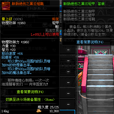 | 85 | 断肠绝伤之黑云短靴 | *任务奖励(地下城:比尔马克帝国试验场 NPC娜塔莉娅·休勒) | 断肠绝伤 套装 | |