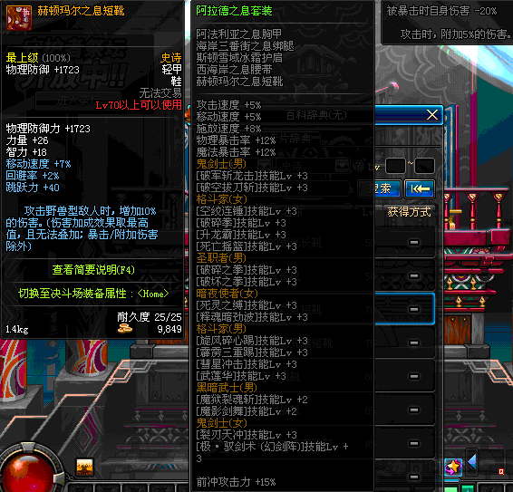| 70 | 赫顿玛尔之息短靴 | *Lv69~76深渊地下城怪物掉落 | 阿拉德之息套装 | |
