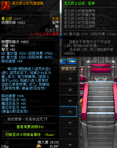 | 75 | 混元武士的咒蕴短靴 | *Lv74~81深渊地下城怪物掉落 | 混元武士征战 套装 | |