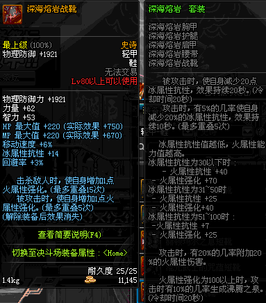 | 80 | 深海熔岩战靴 | *Lv79~86深渊地下城怪物掉落 | 深海熔岩 套装 | |