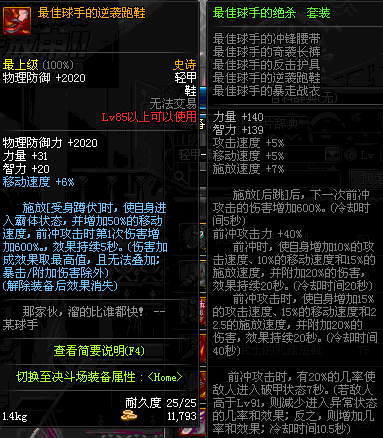 | 85 | 最佳球手的逆袭跑鞋 | *Lv84~91深渊地下城怪物掉落 | 最佳球手的绝杀 套装 | |