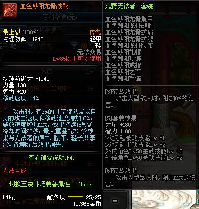 | 85 | 血色残阳龙骨战靴 | *昨日之巴斯顿 掉落 (在远古地下城里出没。) *从NPC鲁特的物品店出售的[血色残阳防具礼盒]中获得 |