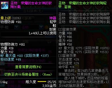 | 40 | 圣物 :荣耀的生命女神的软陶长靴 | *Lv39~46普通地下城怪物掉落 |