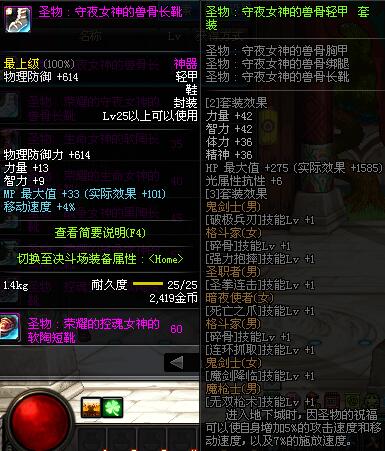 | 25 | 圣物 :守夜女神的兽骨长靴 | *Lv24~31普通地下城怪物掉落 | ||