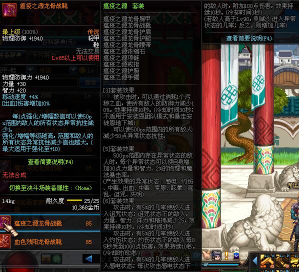 | 85 | 瘟疫之源龙骨战靴 | *昨日之巴斯顿 掉落 (在远古地下城里出没。) *从NPC鲁特的物品店出售的[瘟疫之源防具礼盒]中获得 |