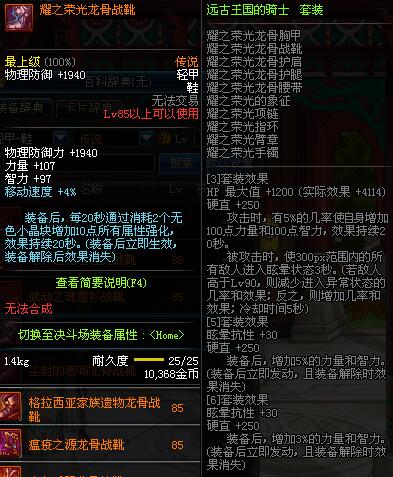 | 85 | 耀之荣光龙骨战靴 | *昨日之巴斯顿 掉落 (在远古地下城里出没。) *从NPC鲁特的物品店出售的[耀之荣光防具礼盒]中获得 |