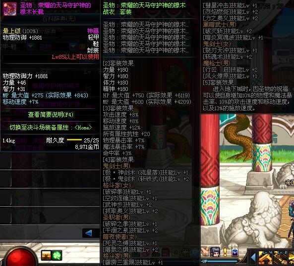 | 85 | 圣物 :荣耀的天马守护神的橡木长靴 | *Lv85~91普通地下城怪物掉落 | ||
