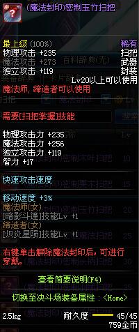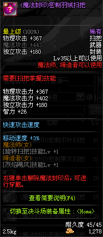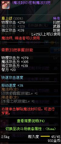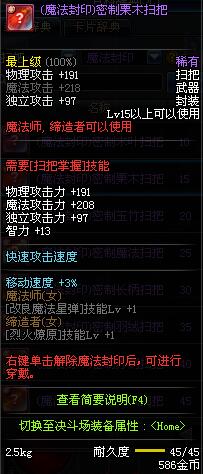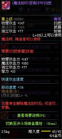 | 15 | (魔法封印)密制栗木扫把 | *Lv13~21普通地下城怪物掉落 *完成[专职贺礼]任务 |