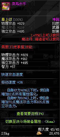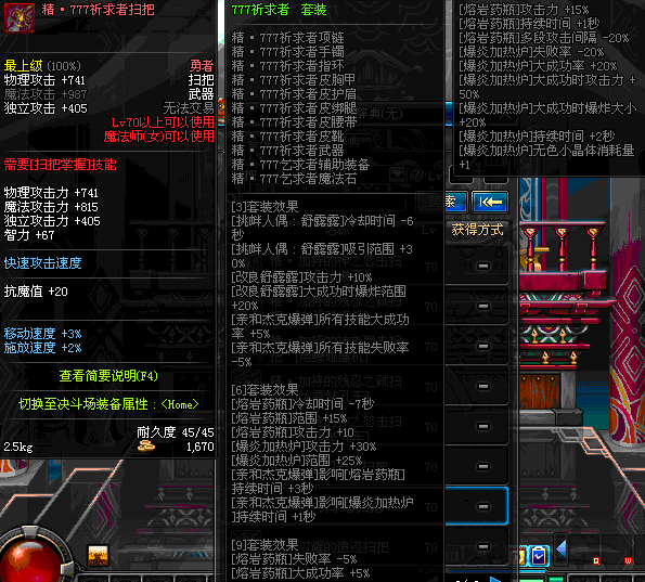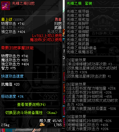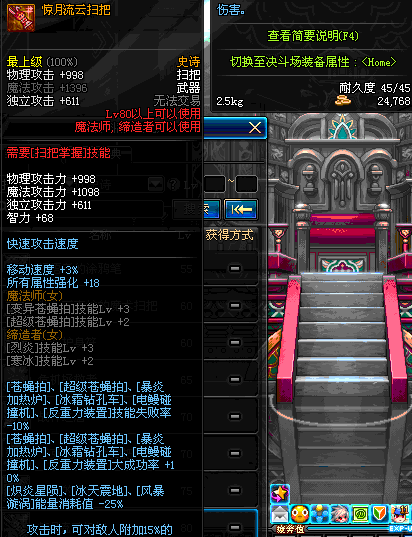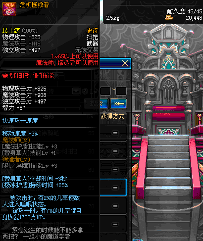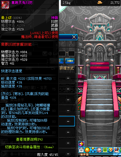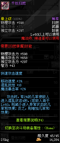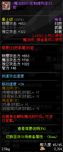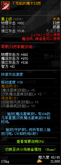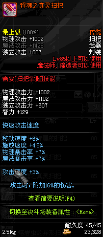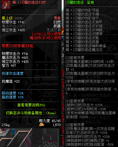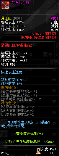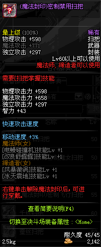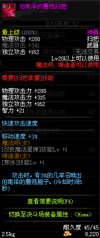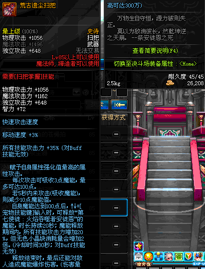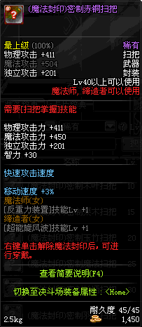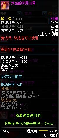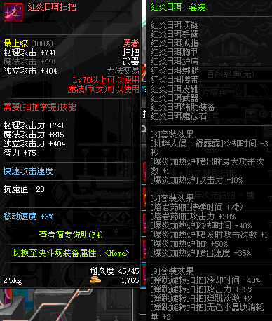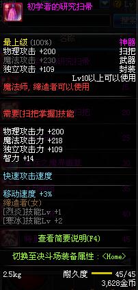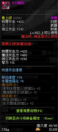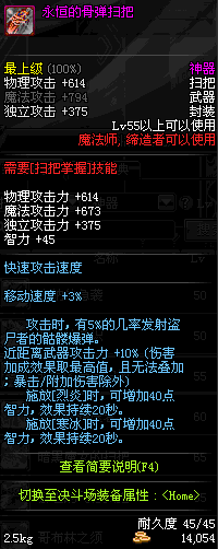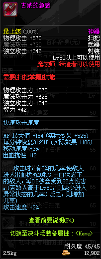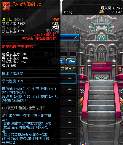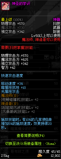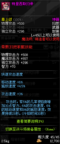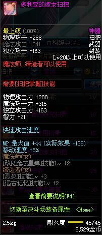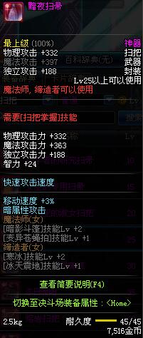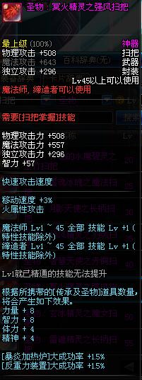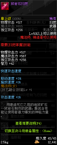 | 45 | 圣物 : 冥火精灵之强风扫把 | *Lv45~51普通地下城怪物掉落 |