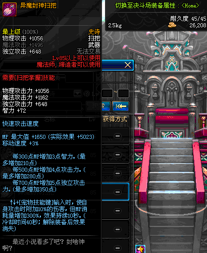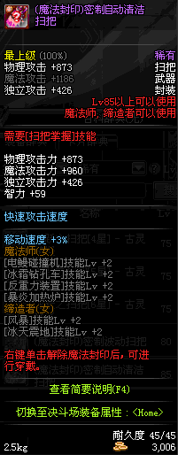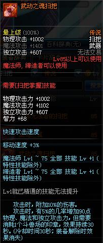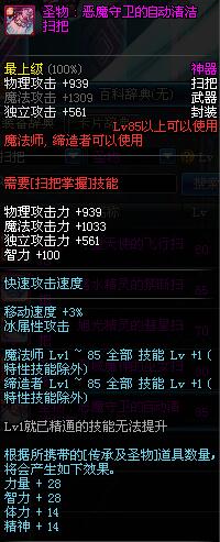 | 85 | 异魔封神扫把 | *Lv84~91深渊地下城怪物掉落 *攻坚队完成安徒恩团队模式的[消灭安徒恩]任务时,获得的奖励。 |