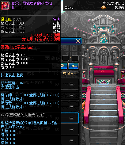 | 80 | 圣物 : 烈域魔神的巫女扫把 | *Lv80~86普通地下城怪物掉落 | ||