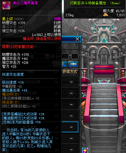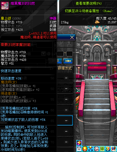 | 65 | 暗黑魔女的扫把 | *Lv65~71普通地下城怪物掉落 *在加百利的神秘商店购买 |