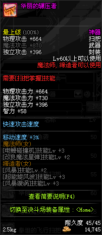 | 60 | 华丽的辗压者 | *Lv58~66普通地下城怪物掉落 *在加百利的神秘商店购买 |