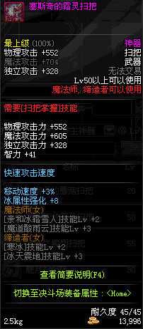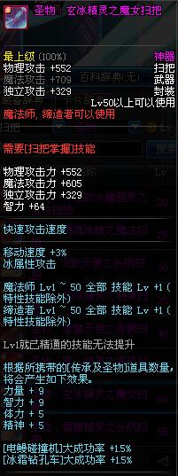 | 50 | 圣物 : 玄冰精灵之魔女扫把 | *Lv50~56普通地下城怪物掉落 |