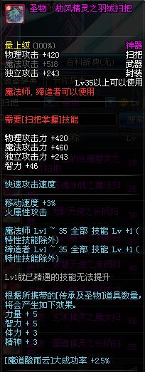| 35 | 圣物 : 劫风精灵之羽绒扫把 | *Lv34~41普通地下城怪物掉落 |