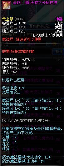 | 30 | 圣物 : 月影天使之长柄扫把 | *Lv29~36普通地下城怪物掉落 |