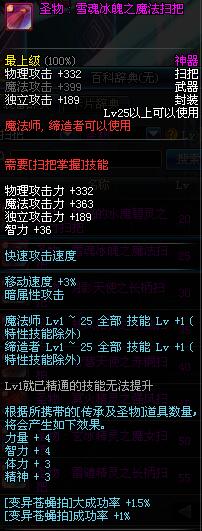 | 25 | 圣物 : 雪魂冰魄使之魔法扫把 | *Lv24~31普通地下城怪物掉落 | ||