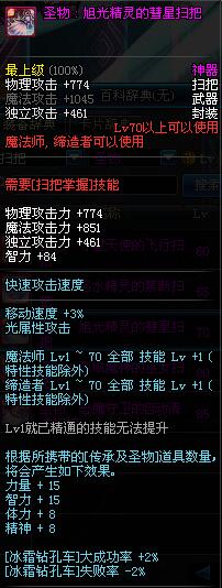 | 70 | 圣物 : 旭光精灵的彗星扫把 | *Lv70~76普通地下城怪物掉落 |