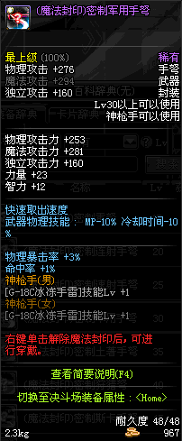 | 35 | 冰宫战弩 | *Lv34~41普通地下城怪物掉落 *在加百利的神秘商店购买 |