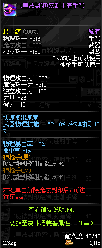 | 50 | 幽灵手弩 | *Lv50~56普通地下城怪物掉落 *在加百利的神秘商店购买 |