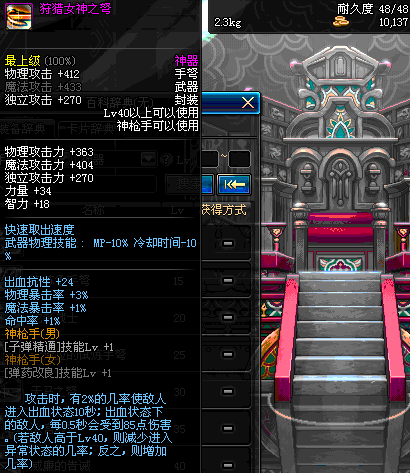 | 40 | 狩猎女神之弩 | *Lv39~46普通地下城怪物掉落 *在加百利的神秘商店购买 |