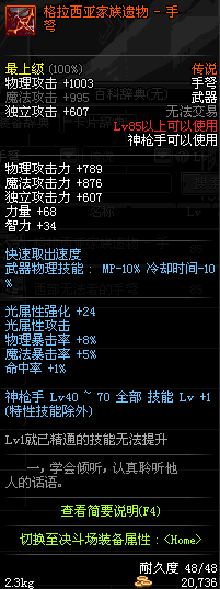 | 70 | 雷狼之暴弩 | *Lv70~76普通地下城怪物掉落 *在加百利的神秘商店购买 |