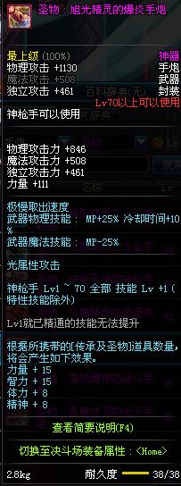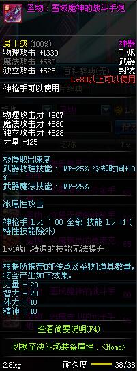 | 35 | 圣物 : 极光天使之巨型手炮 | *Lv34~41普通地下城怪物掉落 |