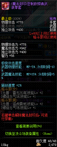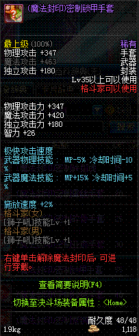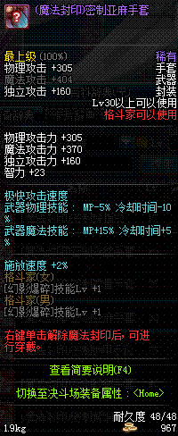 | 50 | (魔法封印)密制格斗手套 | *Lv50~56普通地下城怪物掉落 *完成[黑色噩梦投影出来的世界]任务 *使用Lv50~56怪物掉落的设计图进行制作 |