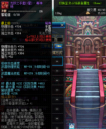 | 75 | 龙跃之手套[3星] - 极武皇 | *完成二次觉醒任务后可以从NPC小铁柱处获得此道具。 | ||