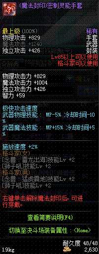 | 80 | (魔法封印)密制救赎者武装拳套 | *Lv80~86普通地下城怪物掉落 |