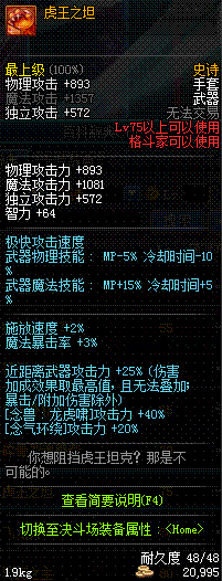 | 50 | 愤怒之歌利亚手套 | *歌利亚 掉落(地下城: 暮色之城) *在NPC敏泰的物品店购买(阿拉德陨石×285) |