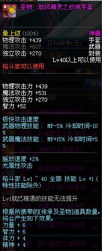 | 40 | 圣物 : 劫风精灵之纱绒手套 | *Lv39~46普通地下城怪物掉落 |