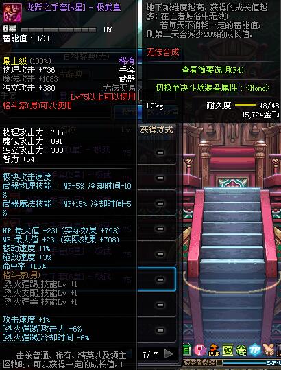 | 75 | 龙跃之手套[1星] - 极武皇 | *完成二次觉醒任务后可以从NPC小铁柱处获得此道具。 | ||
