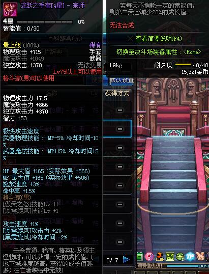 | 75 | 龙跃之手套[5星] - 宗师 | *完成二次觉醒任务后可以从NPC小铁柱处获得此道具。 | ||