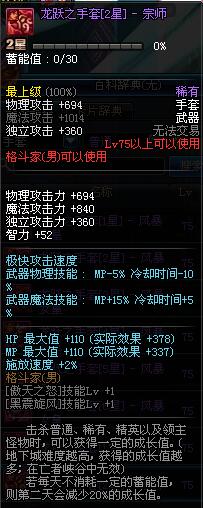 | 75 | 龙跃之手套[2星] - 宗师 | *完成二次觉醒任务后可以从NPC小铁柱处获得此道具。 | ||