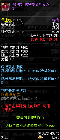 | 45 | *Lv45~51普通地下城怪物掉落 *在加百利的神秘商店购买 |
