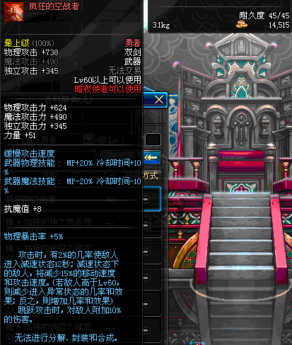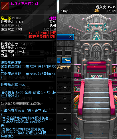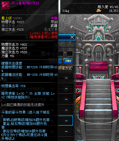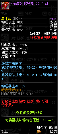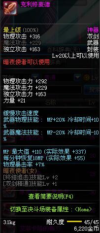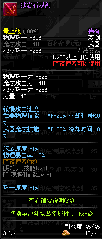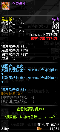 | 55 | 破极卸刃双剑 | *Lv54~61深渊地下城怪物掉落 *在NPC沉默之克雷娅的物品店购买 |