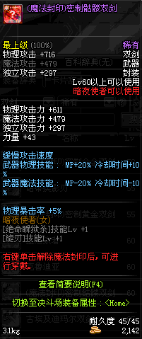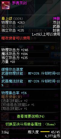 | 15 | 梦魂双剑 | *Lv13~21普通地下城怪物掉落 *在加百利的神秘商店购买 |