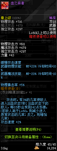 | 65 | 双明剑 - 残血 | *Lv64~71深渊地下城怪物掉落 *在NPC沉默之克雷娅的物品店购买 |