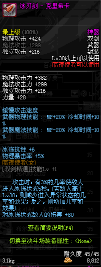 | 30 | 冰刃剑 - 克里希卡 | *Lv29~36普通地下城怪物掉落 *在加百利的神秘商店购买 |