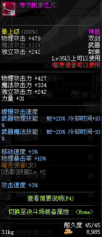 | 35 | 布尔凯索之刃 | *Lv34~41普通地下城怪物掉落 *在加百利的神秘商店购买 |