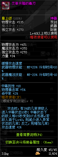 | 40 | 艾菲卡隆的毒刃 | *Lv39~46普通地下城怪物掉落 *在加百利的神秘商店购买 |