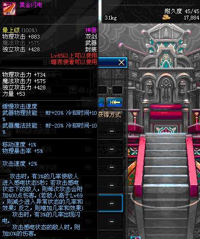| 65 | 黄金闪电 | *Lv65~71普通地下城怪物掉落 *在加百利的神秘商店购买 |