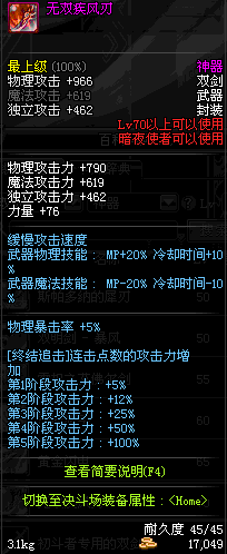| 70 | 无双疾风刃 | *Lv70~76普通地下城怪物掉落 *在加百利的神秘商店购买 |