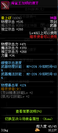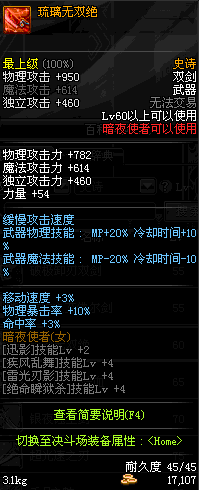 | 辅助装备: | 全职业 鬼剑士 女鬼剑 女格斗 男格斗 神枪手 女枪手 魔法师 男法师 圣职者 暗夜使者 守护者 |
