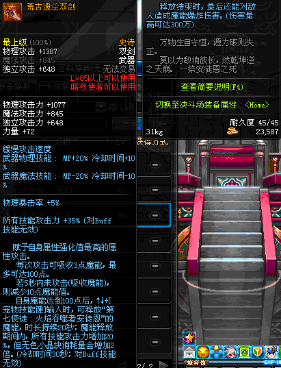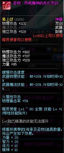 | 80 | 圣物 : 烈域魔神的赤炎双剑 | *Lv80~86普通地下城怪物掉落 | ||