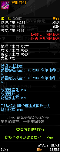 | 85 | 末世双剑 | *Lv84~91深渊地下城怪物掉落 *攻坚队完成安徒恩团队模式的[消灭安徒恩]任务时,获得的奖励。 |