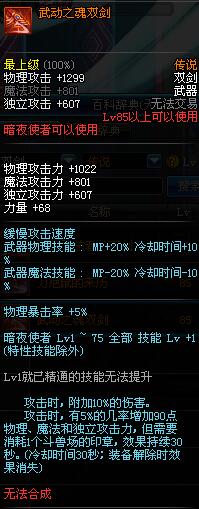 | 85 | 镇魂之封灵双剑 | *时空之门地区 - 吟游诗人艾丽丝 出售 (镇魂之石×100) *购买镇魂武器礼盒(低级镇魂之石×140) |