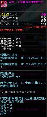 | 65 | 圣物 : 玄冥精灵的骷髅双剑 | *Lv65~71普通地下城怪物掉落 |