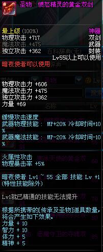 | 55 | 圣物 : 愤怒精灵的黄金双剑 | *Lv53~61普通地下城怪物掉落 |